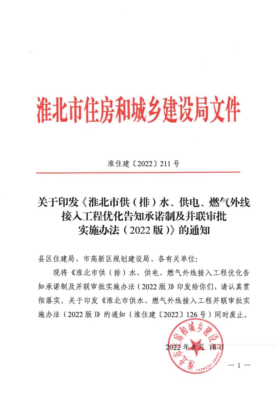 淮北市供(排)水、供電、燃氣外線接入工程優化告知承諾制及并聯審批實施辦法(2022版)